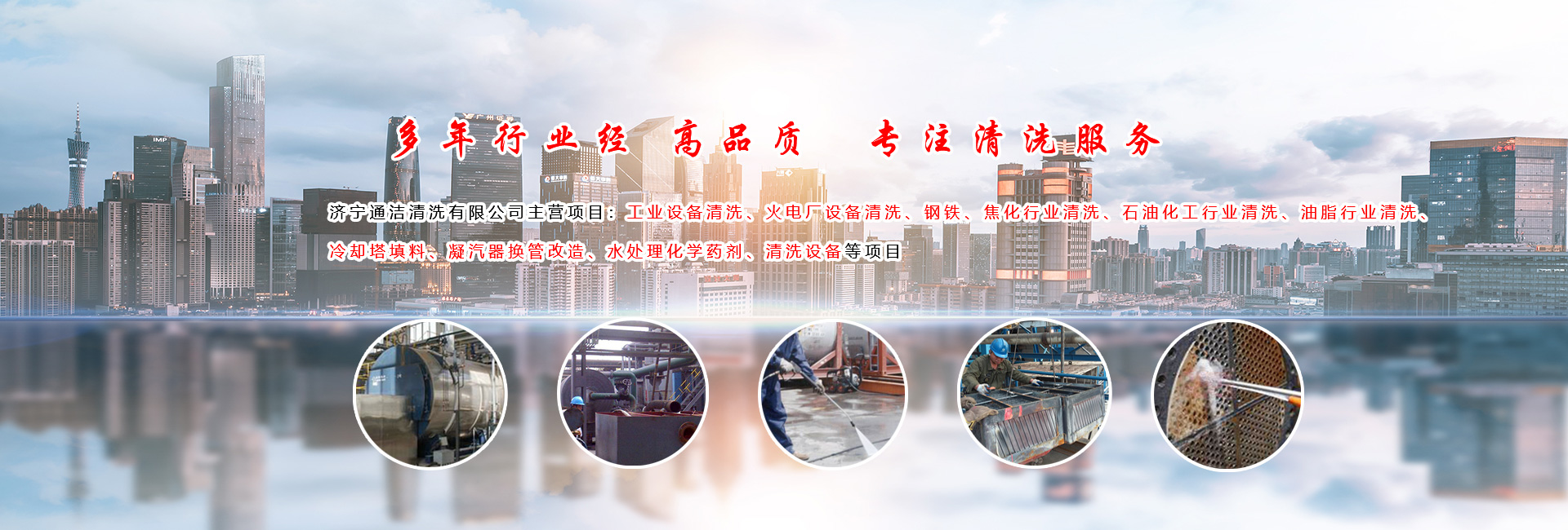 濟(jì)寧通潔清洗有限公司創(chuàng)建于2011年,致力于工業(yè)設(shè)備清洗、水處理藥品以及各種新型高效冷卻塔淋水填料的生產(chǎn)和銷售,是山東規(guī)模性生產(chǎn)、研發(fā)、設(shè)計(jì)、改造、銷售為一體的綜合性企業(yè)。濟(jì)寧通潔清洗有限公司,擁有超高壓水射流設(shè)備3臺(tái),美國超高壓設(shè)備,工作壓力可達(dá)2700公斤,建有化驗(yàn)室,具有完備的化驗(yàn)、分析及檢測(cè)的鑒定手段,各種化學(xué)清洗裝置三十余套,具備多處施工的能力,在化學(xué)清洗方面,可根據(jù)不同設(shè)備材質(zhì)、垢質(zhì)的成分、選配不同清洗藥劑。公司擁有專利清洗技術(shù)、專用清洗設(shè)備、專用清洗藥劑,專業(yè)施工隊(duì)伍,完全可以滿足客戶超越性的期望。在水處理方面,保護(hù)水資源、不斷提高水的循環(huán)利用率是我們的工作目標(biāo),針對(duì)各地區(qū)高硬度、高堿度、高PH值的水質(zhì)特點(diǎn),本公司獨(dú)立研制的數(shù)十種復(fù)合阻垢緩蝕劑、以及多種高效廣譜殺菌滅藻劑,藥劑具有投加量少、使用水質(zhì)范圍寬、阻垢緩蝕率高、不污染環(huán)境等特點(diǎn),公司產(chǎn)品廣泛應(yīng)用于電力、化工、油脂、鋼鐵、焦化、造紙、制藥、食品等領(lǐng)域。為客戶創(chuàng)造價(jià)值,助企業(yè)贏取未來!各種新型高效冷卻塔淋水產(chǎn)包括新型斜折波、“s . . . . .
